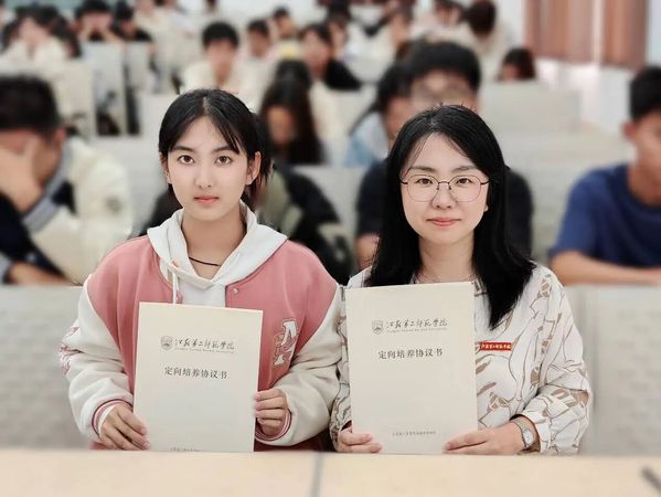 教科院党总支书记丁莹与2025级应用心理学乡村教师定向班学生代表张雨霏郑重签署培养协议。这份协议承载着责任与梦想,每一位定向班学子都将把个人成长扎根乡土,用青春耕耘换来乡村教育的繁花似锦,以实际行动践行师范生的家国担当。