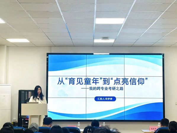 2023届学前教育专业毕业生宋梦婷(现就读于南京信息工程大学马克思主义理论专业硕士研究生)分享了跨专业考研的宝贵经验。以从'育见童年'到'点亮信仰'为题,她坦言跨考源于对学术钻研的热爱与对理想的执着追求。她特别强调本科专业学习的重要性:学前教育所学知识至今仍是我理解新专业的宝贵财富。你永远不知道哪门课、哪本书,会在未来点燃你前行的方向。她建议学弟学妹多阅读以拓展视野、多参与活动探寻方向,在不断尝试中找到真正热爱的领域。