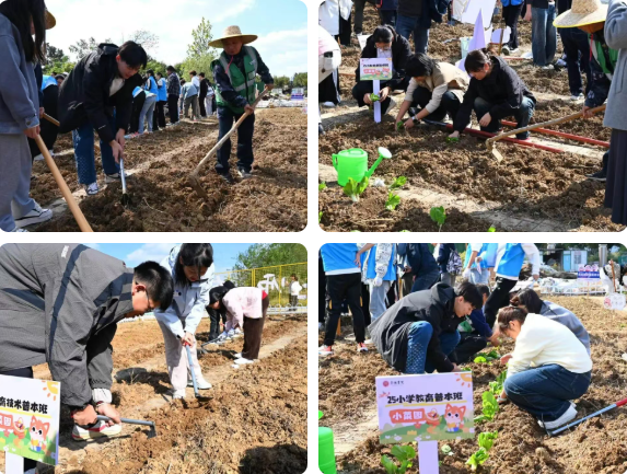 仪式结束后,秋种活动随即展开。金秋的“躬耕园”阳光明朗、草木葱茏,泥土的清香伴着微风扑面而来。在劳动教育导师的指导下,崇德书院的同学们投入到劳动实践之中。导师讲解翻土技巧,示范农具使用方法。同学们认真聆听、分工协作,铁锹翻动间,土地渐趋松软,笑声与汗水交织在一片生机之中。翻土结束后,师生们共同完成种植环节。大家将蔬菜幼苗和种子一一植入整好的畦田,细致覆土、轻柔浇灌。清水渗入泥土,新苗舒展青翠,象征着希望与成长,也映照出同学们对劳动的理解与热爱。