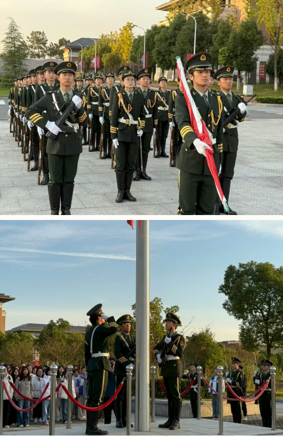 11 月 3 日清晨,我校在石湫校区国旗广场举行升旗仪式,崇德书院2025级全体新生、国防协会成员等齐聚于此,共同见证这一庄严时刻。