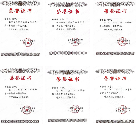 郭佳佳重视竞赛能力的培养,在“挑战杯”、青年志愿服务大赛、中国国际大学生创新大赛等重多大赛中斩获20余项奖项。其中第十四届挑战杯竞赛是我校历年来唯一一支队伍推至国赛,并获得国家级银奖,大半年的赛程,几十G的资料,上百次的修改,她倾注了百分的热情和心血,最终这个项目在全国2700余所高校39万余个创新创业项目中脱颖而出,实现了我校在该赛事上的重大突破。她积极响应“科教兴国,人才强国”发展战略的号召,不断夯实自己的专业素养,扩充自己的知识技能,为强国建设贡献自己的力量。
