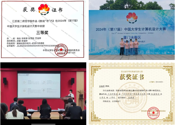 她参与第十七届中国大学生“计算机设计”大赛并最终获得国家三等奖的优异成绩;在教育部举办的第五届“中华经典诵写讲”大赛中表现突出,作品《篆刻》入选北京展区展出。2024年作为核心成员参与江苏省“铸牢中华民族共同体意识比赛”,所在团队获评省级先进团体;她参与红色幼儿绘本项目《传承红色基因,绘就育人底色——大学生红色文化幼儿绘本工作室建设》,探索红色文化与幼儿教育的融合路径;2025年作为项目主持人申报大创项目《中国共产党百年儿童保护政策汇编与AI赋能宣传》并成功立项。