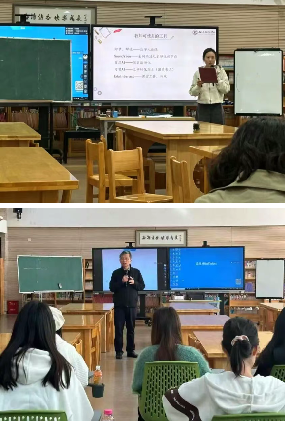 陶行知小学陶裪老师带来了《数智赋能 融创未来——跨学科主题学习的变革与实践》的学术讲座。陶老师深刻剖析了传统教学的现实困境,指出数学教师应坚守学科本质,并结合数字化转型趋势,为跨学科教学提供了清晰的实践图谱。金陵中学实验小学魏光明老师在点评总结中强调,师范生应注重说课内容的创新性与拓展性,通过反复研读教材、夯实“三字一话”基本功,设计出真实、有用且有趣的数学课堂,切实提升核心素养导向下的教学质量。