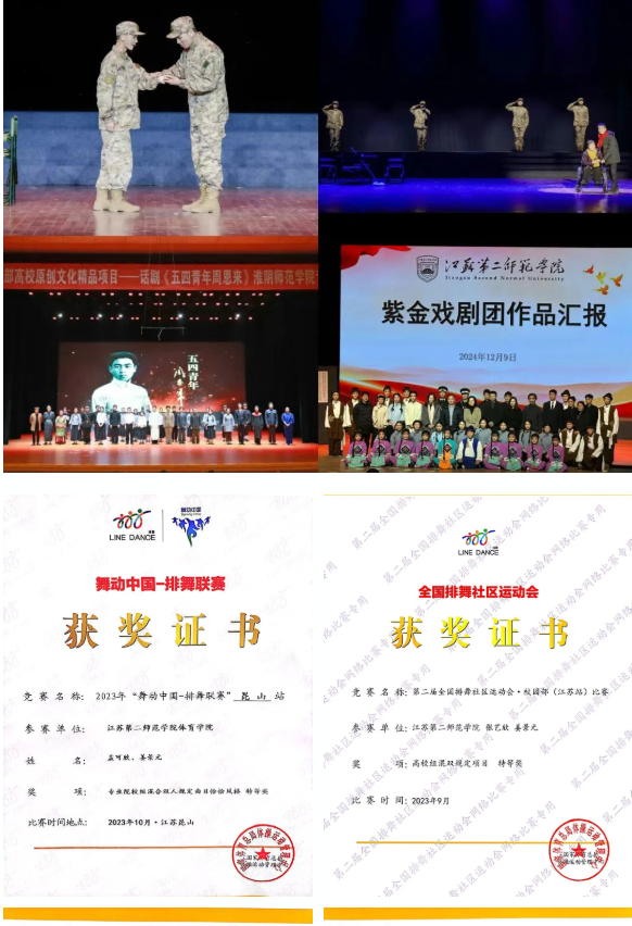 为拓宽专业边界,他探索心理学与多领域融合:在南京证券用团体动力学理论设计团队建设活动,在水墨秦淮画室研究绘画疗法应用,在优鹿体育单招机构开展教师技能实训。作为校排舞队核心成员,他考取相关教练员、裁判员证书,斩获全国排舞总决赛三等奖等荣誉,探索“舞动疗法”的干预模式。