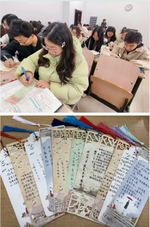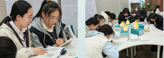 在追思交流环节,同学们静下心来,细细品读于漪先生的教育著作,悉心甄选触动灵魂的教育箴言,一笔一划郑重誊写于书签之上。这一枚枚承载着敬意的小小书签,或妥帖珍藏以时时自省,或赠予同窗共传精神,或悬挂于书院文化墙遥寄哀思。笔墨为媒,方寸之间,不仅刻印着学子们对先生的无尽怀念,更将先生“站上讲台就是生命在歌唱”的教育信念,深深镌刻在每一位未来教师的心底。